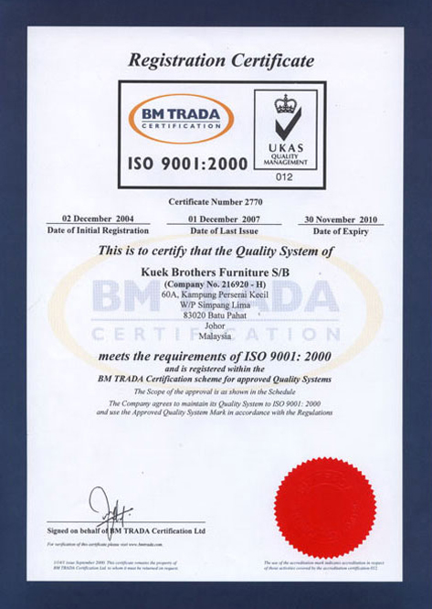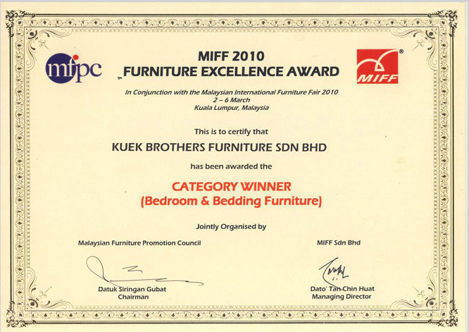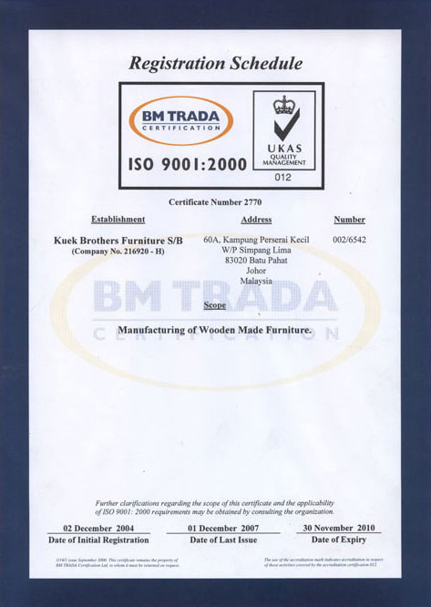 At Kuek Brothers Furniture Sdn.Bhd, we are not compromise in quality that have proved it over the years by manufacturing cost effective products of high quality by using state-of-arts machinery in order to ensure that we will remain proactive key players in the furniture markets. Therefore, we are able to deliver stylish, high quality furniture at reasonable price.